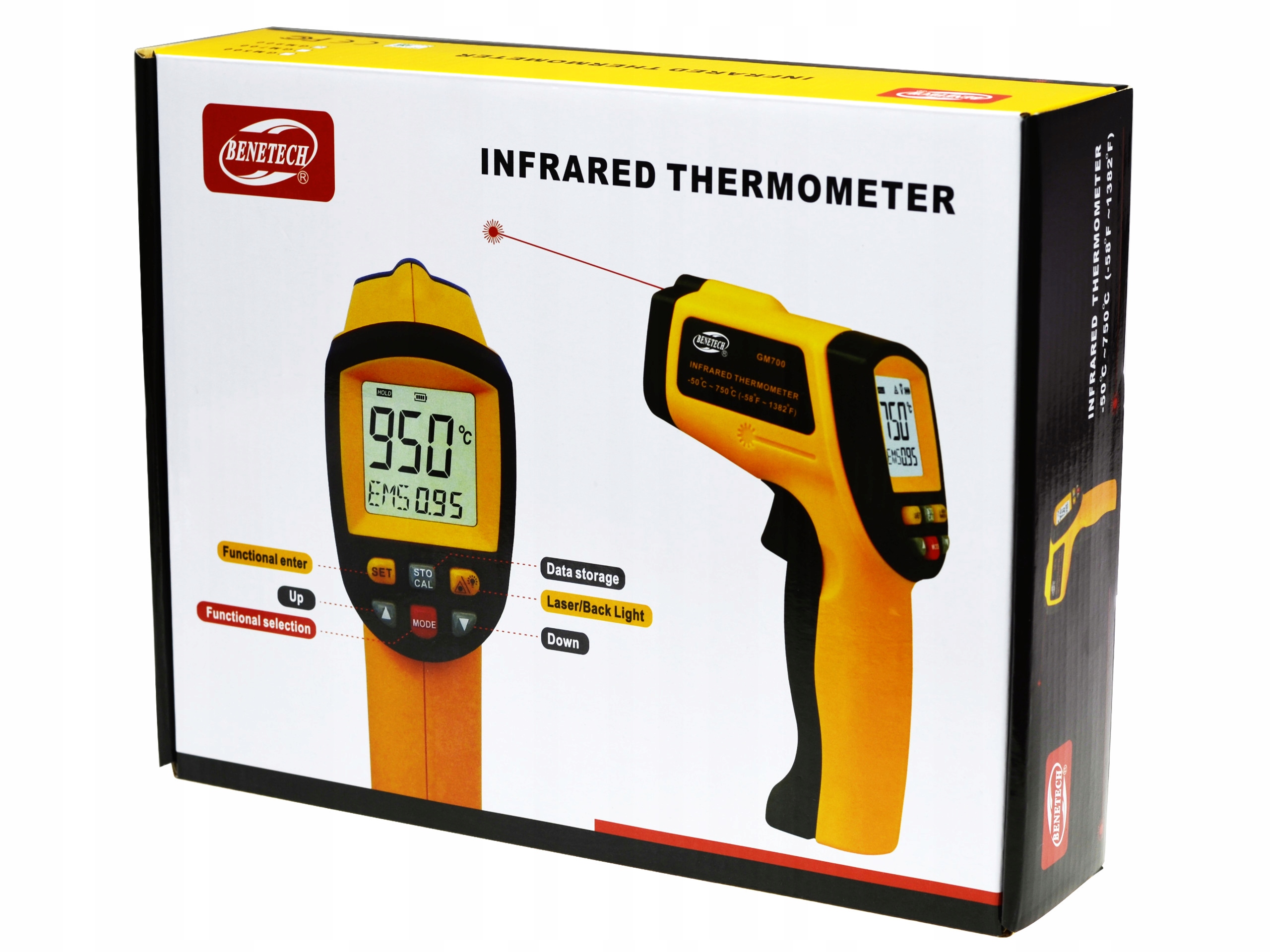 Пристрій оснащений лазерним прицілом, що дозволяє точно приєднати перевірену точку. Пристрій використовує якісні матеріали, а ергономічна конструкція покращує зручність використання термометра. Дисплей підсвічування дозволяє працювати з пристроєм у темряві. Пірометр оснащений функцією автоматичного перемикача, збільшуючи економію споживання акумулятора.