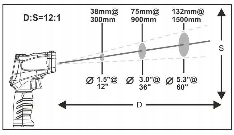 - Коефіцієнт відстані вимірювання: 12:1