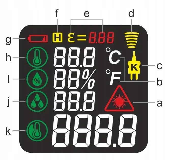 - K. Значення температури поверхні (інфрачервоне вимірювання температури).