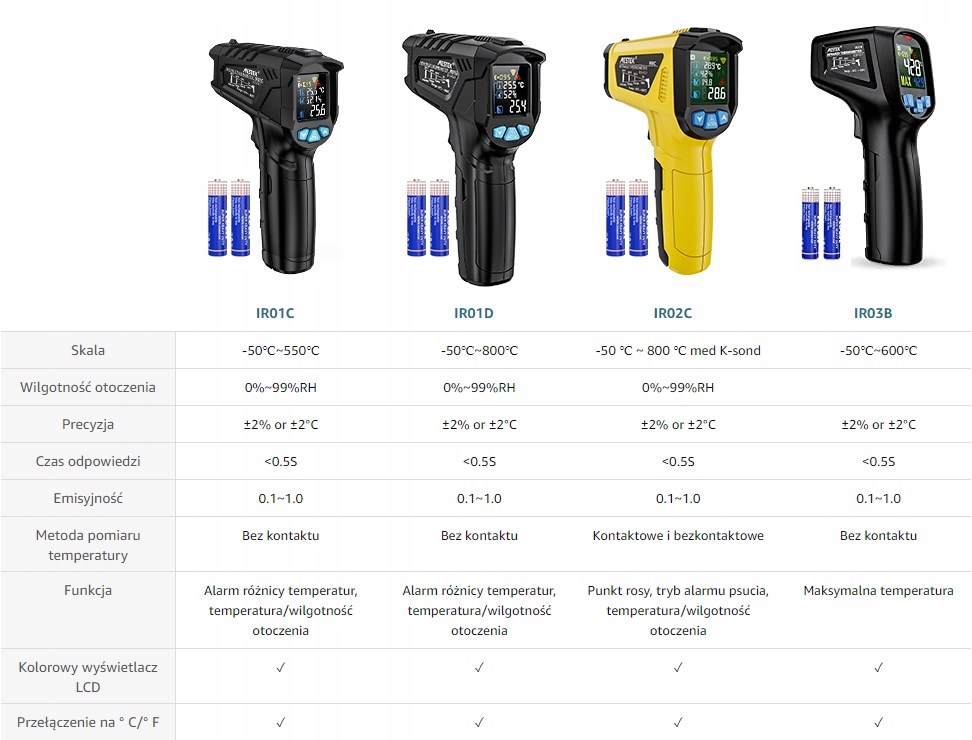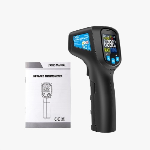 Інфрачервоний термометр IR03B може швидко вимірювати температури поверхні об'єктів, просто увімкніть термометр і натисніть кнопку вимірювання, не торкаючись небезпечних, гарячих або холодних об'єктів, легко виміряйте температуру небезпечних, важкодоступних поверхонь або навіть рухомих об'єктів. Точку вимірювання можна швидко встановити за допомогою однієї лазерної точки.