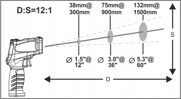 ✅ Розмір точки вимірювання змінюється з відстанню у співвідношенні 12:1