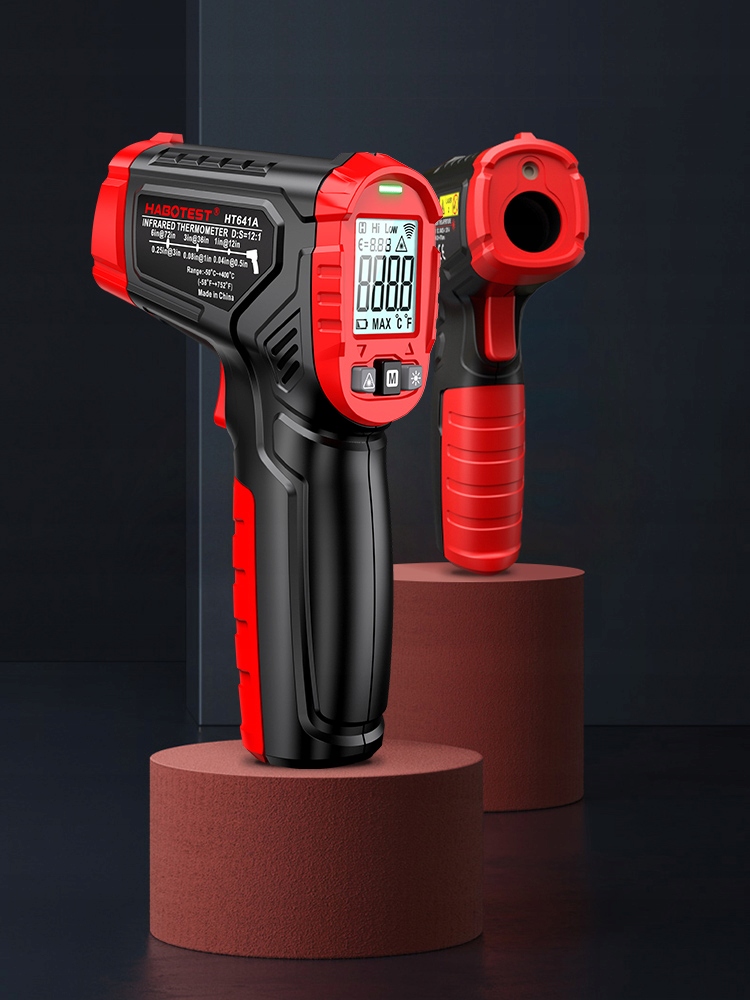 Пірометр реагує миттєво (0,5 секунди) і точно вимірює температуру в широкому діапазоні (від -40°C до 400°C). ). Просто спрямуйте лазерний промінь на досліджуваний об’єкт, щоб отримати всі необхідні дані.