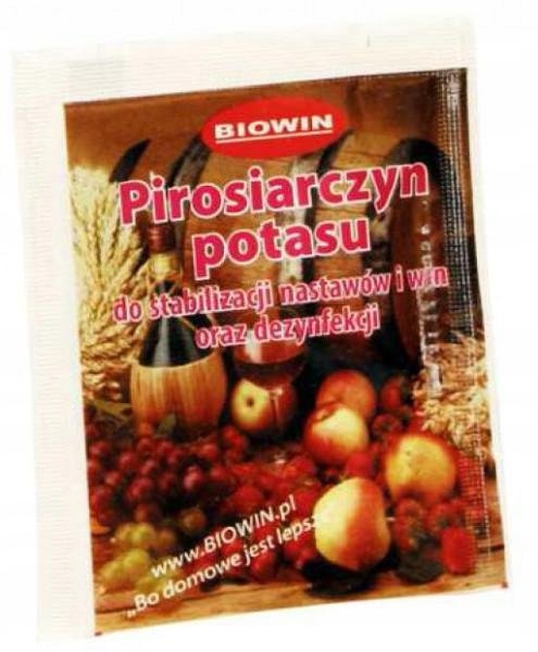 Метабісульфіт калію (PP) - хімічний агент, який зазвичай використовується для стабілізації сусла та вин. Його також можна використовувати для промивання обладнання для вина та пивоваріння. Упаковка містить 10 г калію метабісульфіту кристалічного.