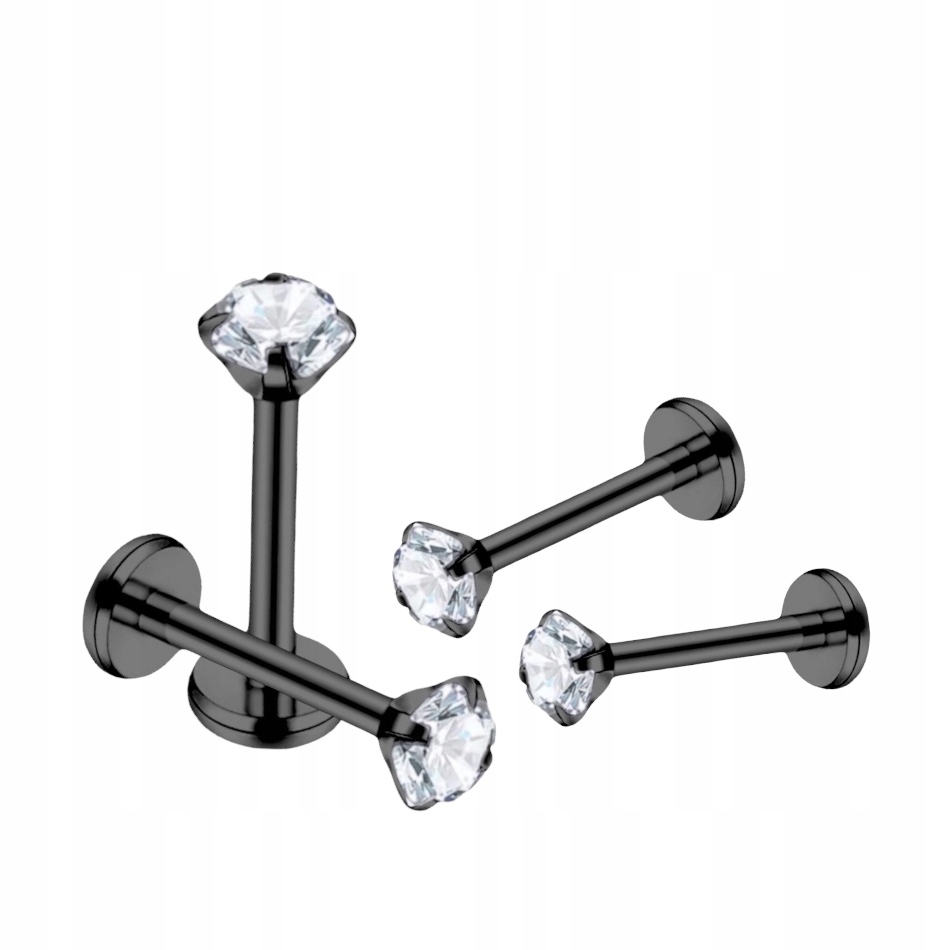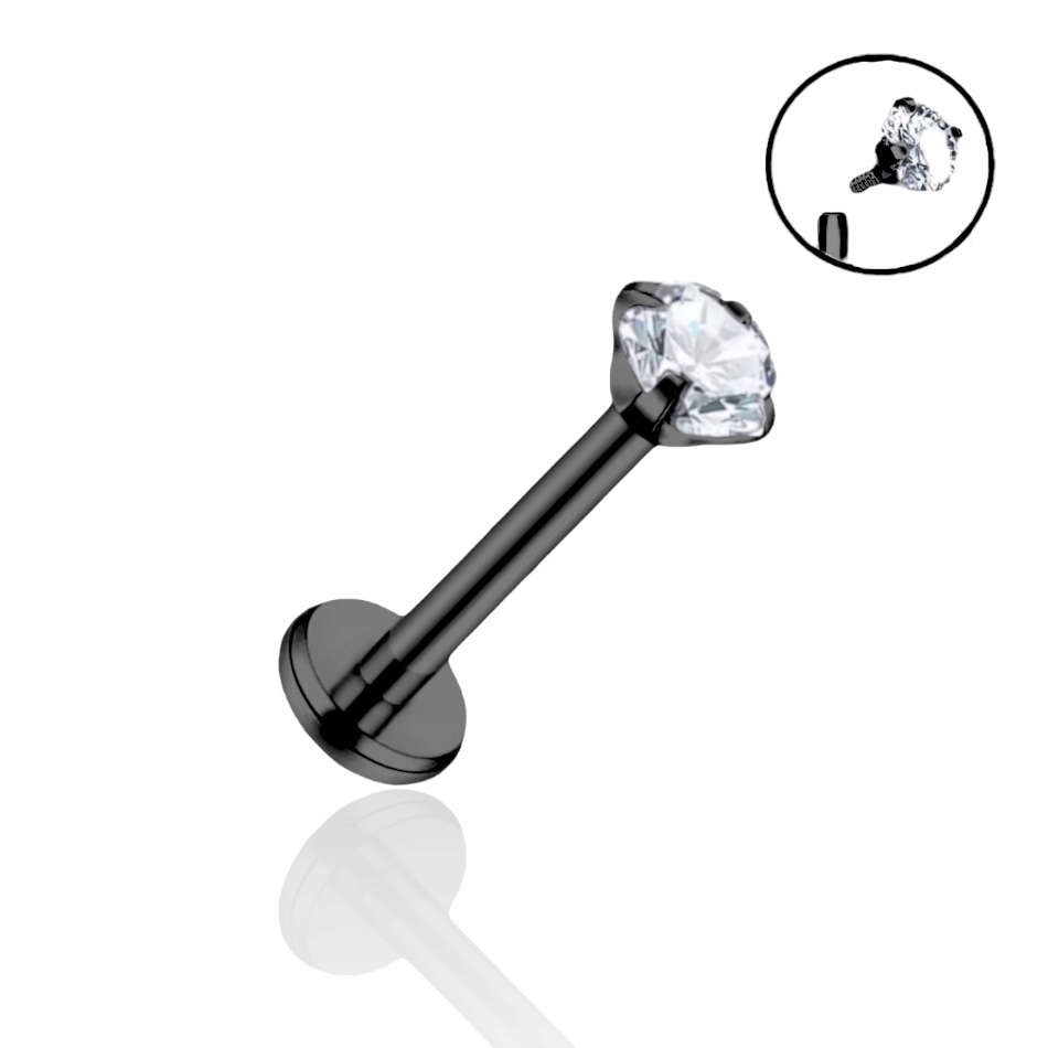 ПІРСИНГ Чорний лабрет з цирконом TITANIUM 1.2/6/3