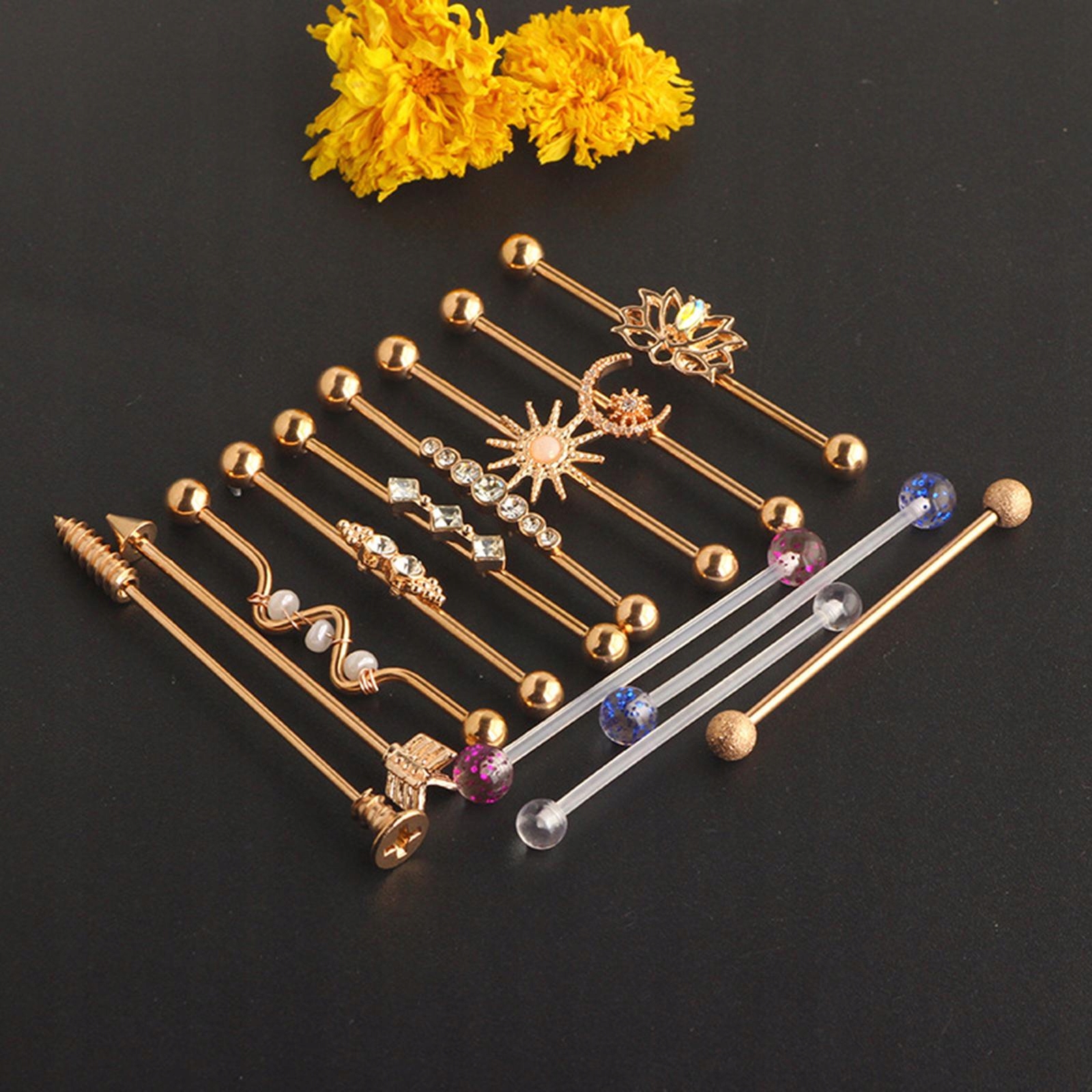 Пакет: Набір містить 13 різних стилів промислових сережок із штангою, яка може задовольнити ваші різноманітні потреби.