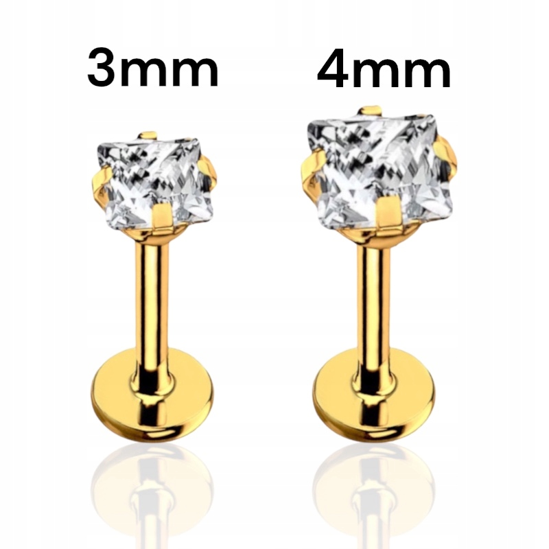 Лабрет з титану, золота з ковпачком з квадратним цирконом, розмір 1,2/10/3