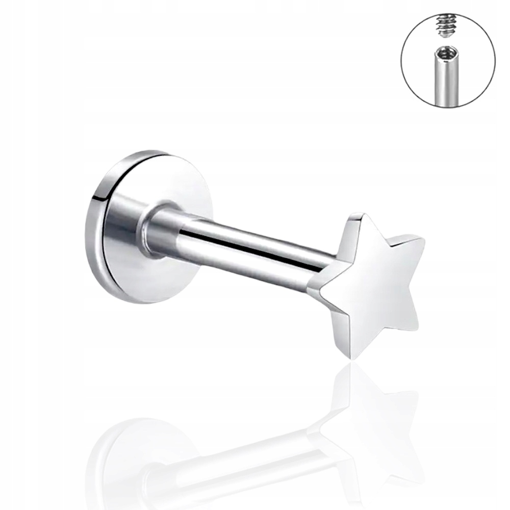 Титановий, срібний лабрет із зіркоподібною шапкою, розмір 1,2/6/3