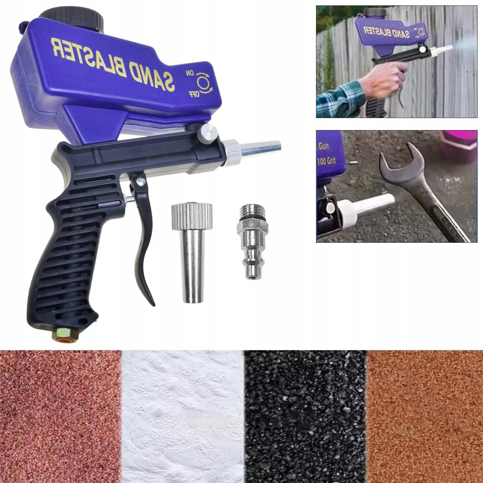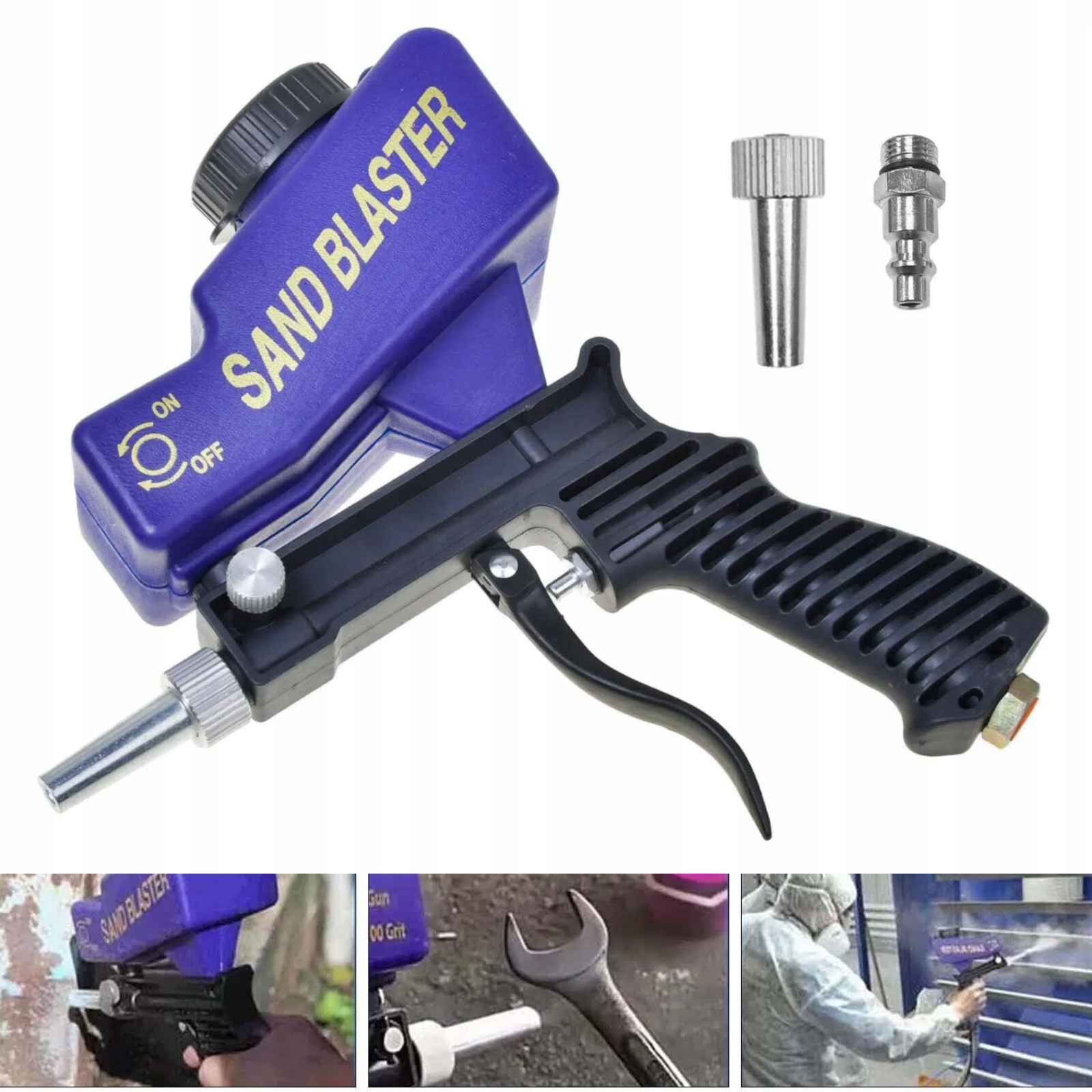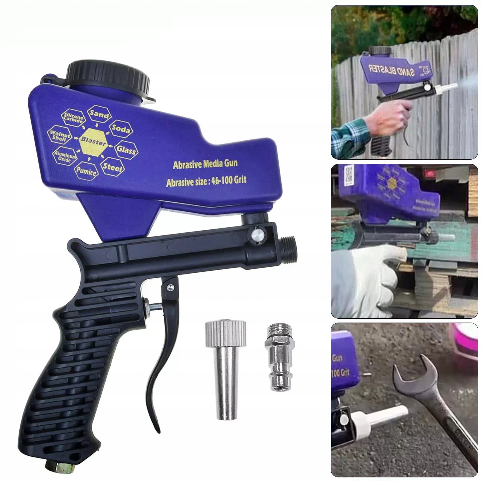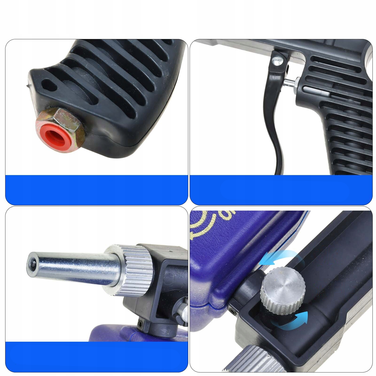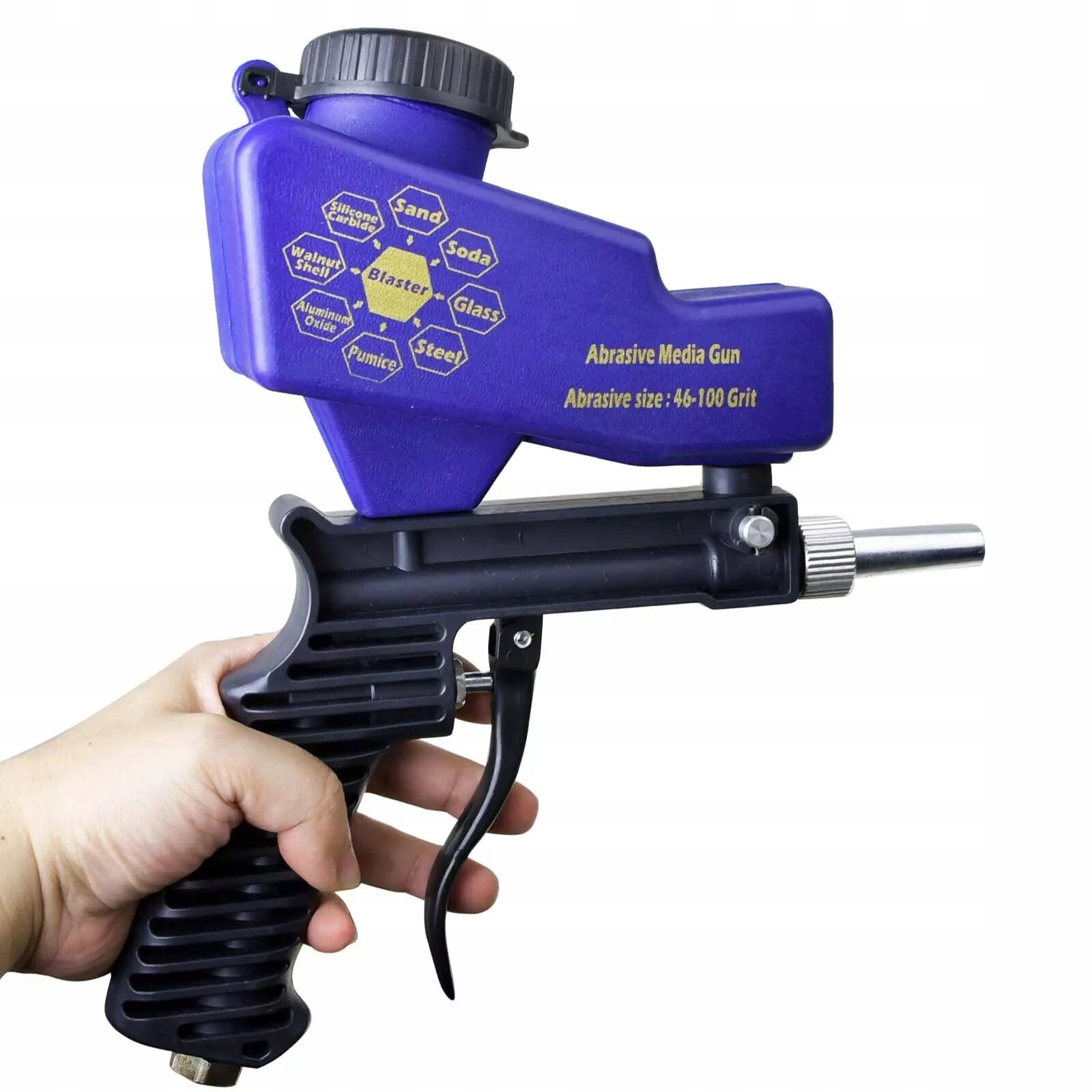 Зручна конструкція: потік піску можна контролювати за допомогою тригерного перемикача, без необхідності виконувати складні операції. Тригерний перемикач автоматично повертається у вихідне положення, щоб припинити піскоструминну очистку, коли ви відпускаєте руку, що робить його дуже зручним і зручним у використанні.