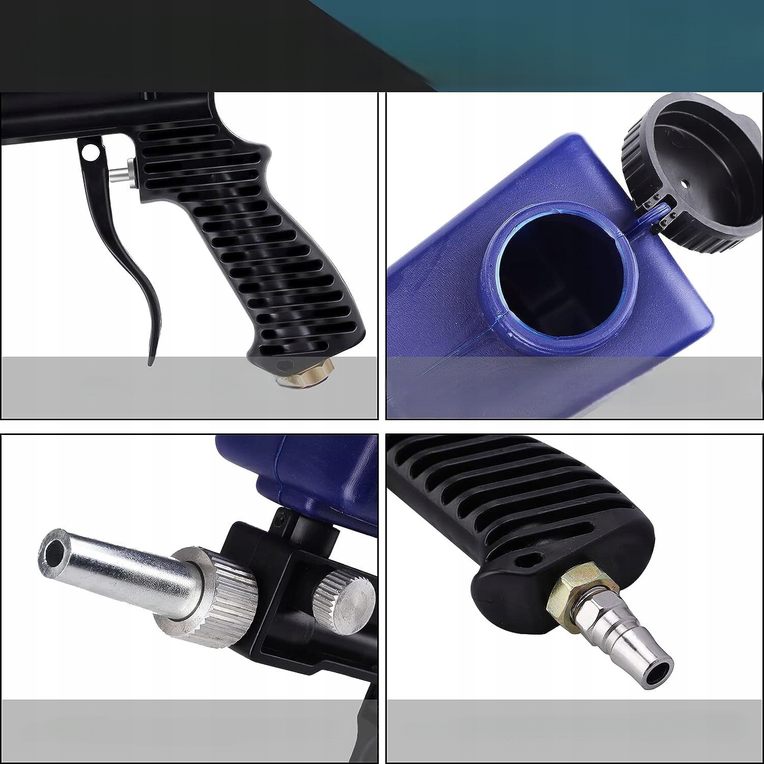 - 🔫 Легко використання: Простий у використанні, просто натисніть на курок, щоб розпочати піскоструминну очистку, а потім, коли ви відпустите руку, піскоструминна робота автоматично припиниться.