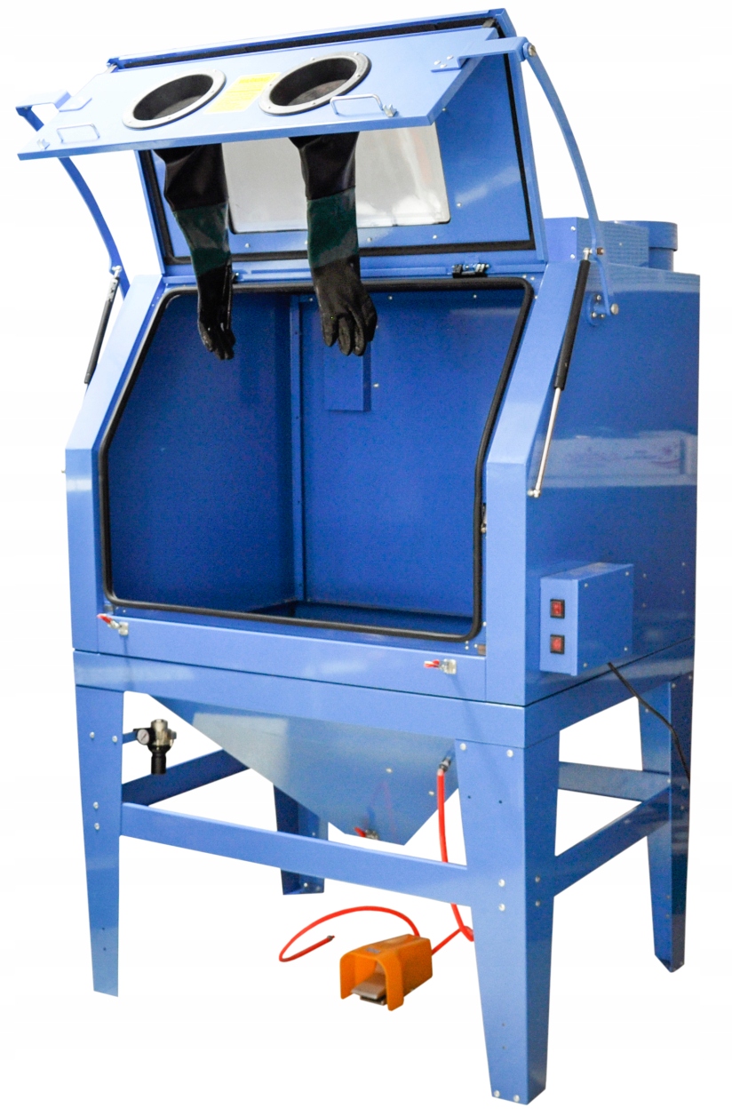 Чудовий кабінний піскоструминний апарат об'ємом 900 лпідключений до компресора, забезпечує швидке та ефективне очищення поверхонь.