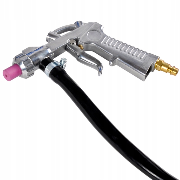 - в комплект входить професійний піскоструминний пістолет з набором 4 керамічних насадок (4, 5, 6, 7 мм) і шланг довжиною 4,5 м.