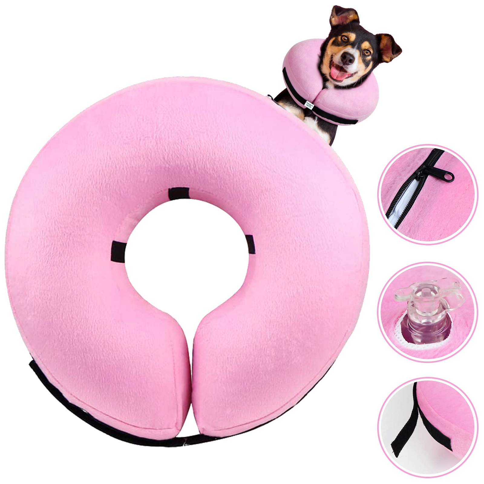 【захист】 --- надувний комір захищає ваших тварин від травм, висипань та післяопераційних ран, запобігаючи кусанням та облизуванню рани або експлуатації, а також прискорення одужання після операції або ран. Носіння】 --- складається з рожевого зовнішнього кільця та білого внутрішнього кільця, виготовленого з пластику. Зовнішнє кільце виготовлене з короткого плюшевого плюшевого шкіри, а внутрішнє кільце, виготовлене з ПВХ, з хорошою еластичністю після надучення. Ваша собака не відчуватиметься пригнобленими чи нервовими, носив цей м’який, теплий і комфортний комір.