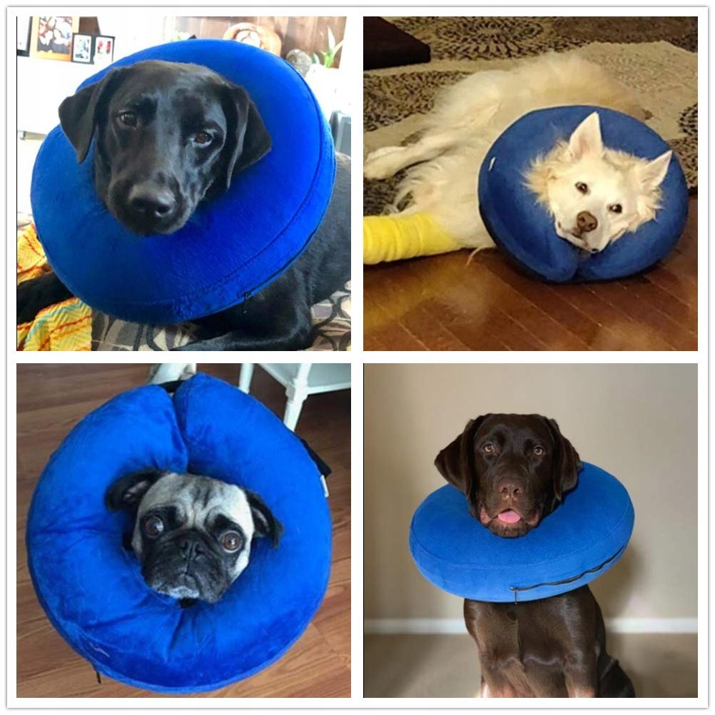 【комфортно з вдосконаленою якістю】 , виготовленим із здорового матеріалу, м'якого та комфортного, але також сильного, непросто зламати собак чи котів, надувна структура та м'який зовнішній матеріал дозволять вашій собаці комфортно носити її і не покривати вигляд вашого вихованця, вони можуть їсти, пити, спати і грати нормально.