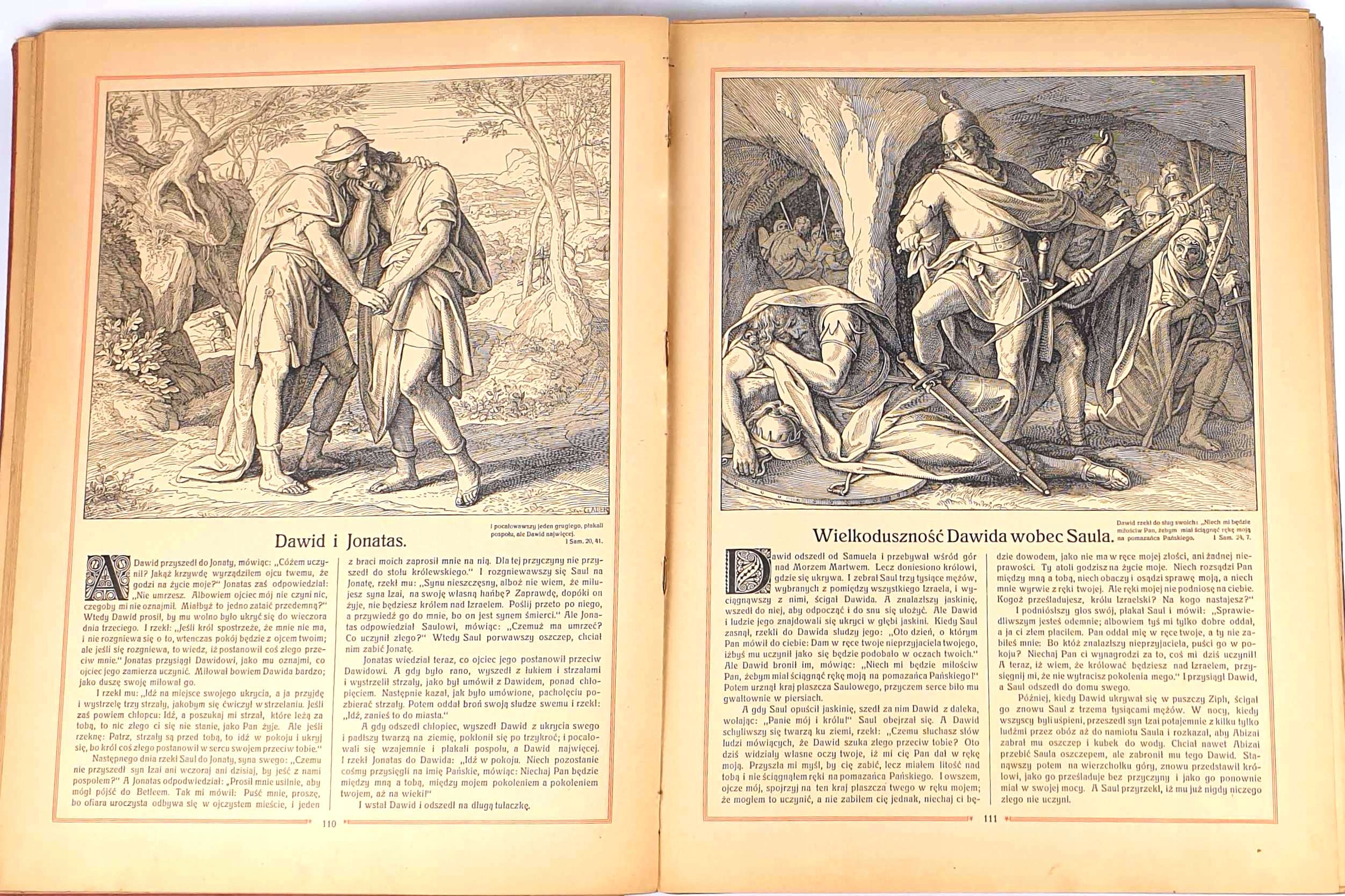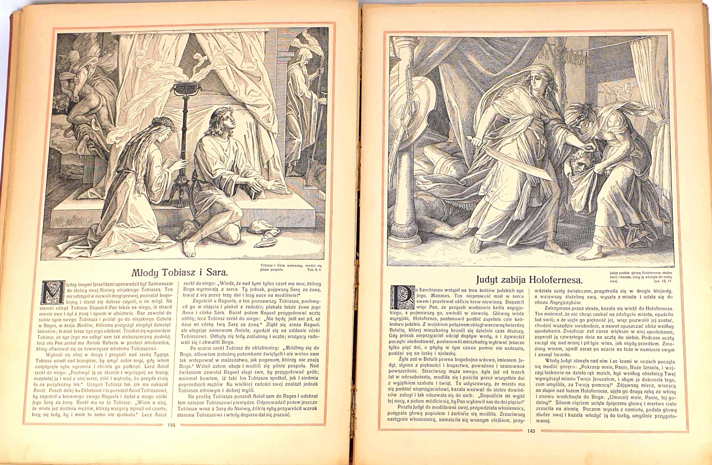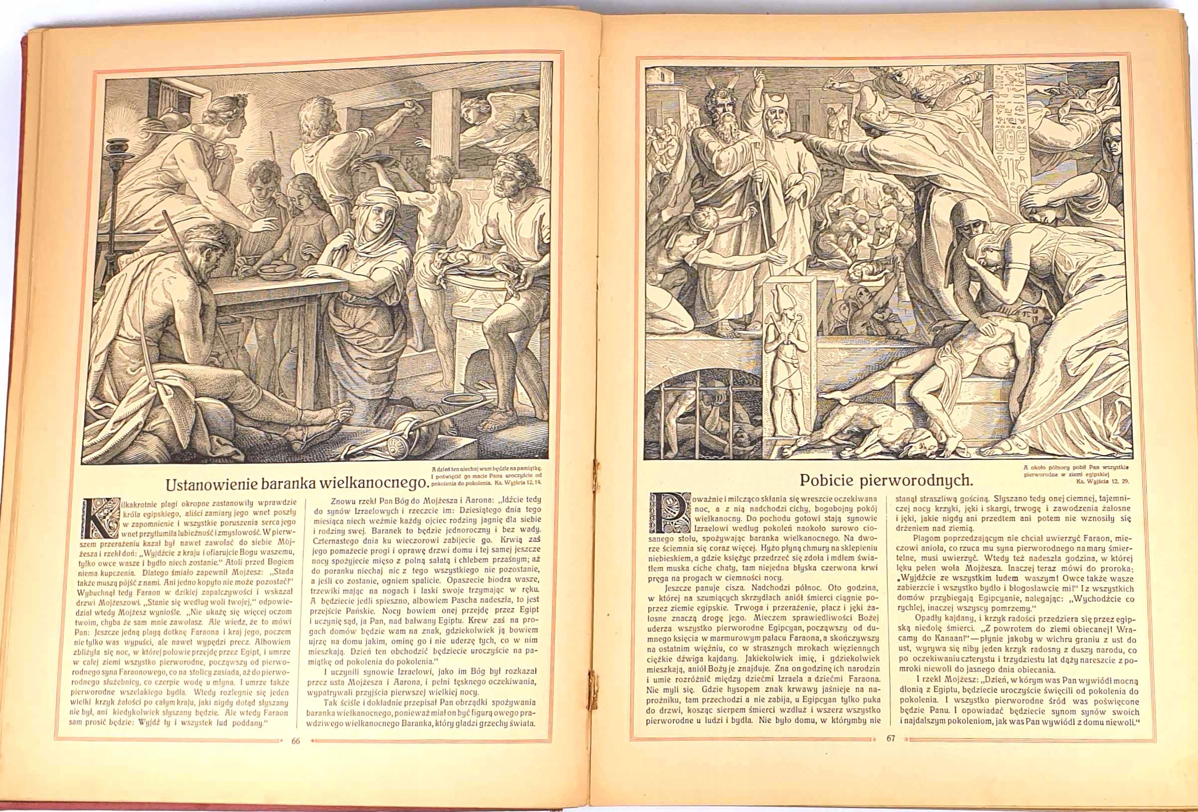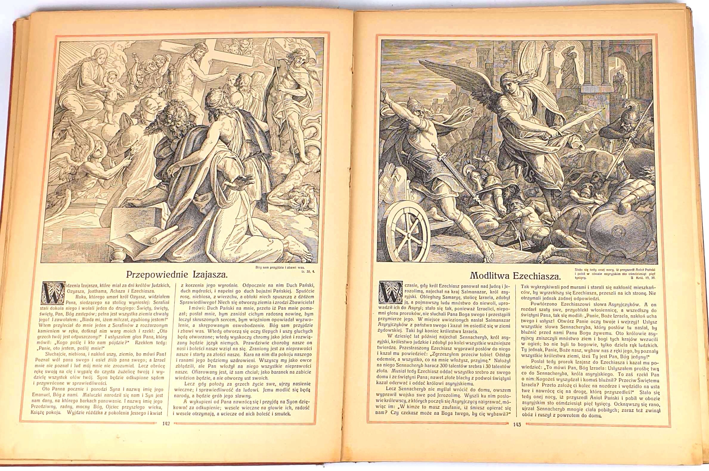 Вірний виклад священних книг, підготовлений польським таємним камергером Святішого Отця. - священик Юзефа Клоса, у співпраці з видатними діячами Церкви міжвоєнної Польщі: єпископами та професорами, було поєднано з прекрасними художніми репродукціями «згідно з оригіналами найкращих майстрів», які ілюстрували та графічно пояснювали обраних героїв та епізоди Старого та Нового Завіту. .