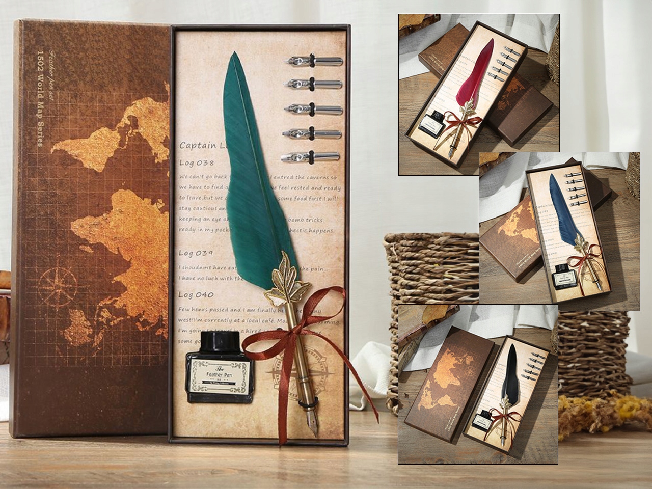 Письмовий набір - ручка зі змінними наконечниками та чорнилом (комбінація з 4 ручок
