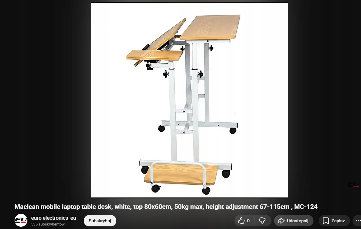 ✅Практичний і універсальний мобільний стіл Maclean MC-124 є ідеальним рішенням для людей, які цінують комфорт роботи та навчання.