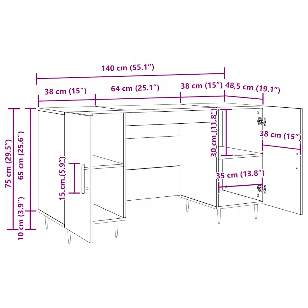 - Компоненти: стіл постачається з полицями, які виглядають як справжня деревина, що пропонує різноманітні варіанти зберігання. Стильні дверцята на петлях дозволяють заховати дрібниці, а елегантні ручки додають вишуканості. Кожну частину було вибрано так, щоб підвищити зручність використання та естетичність.