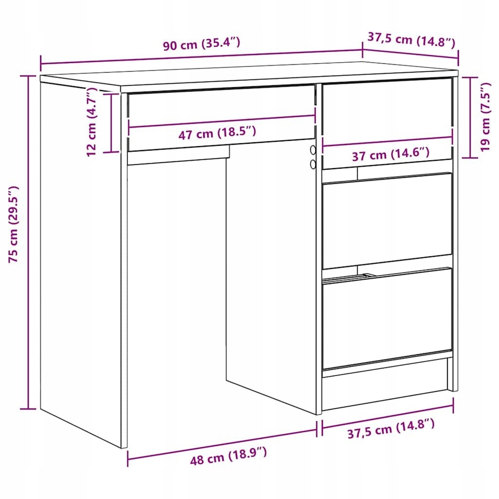 - Загальні розміри: 90 x 37,5 x 75 см (Д x Ш x В)