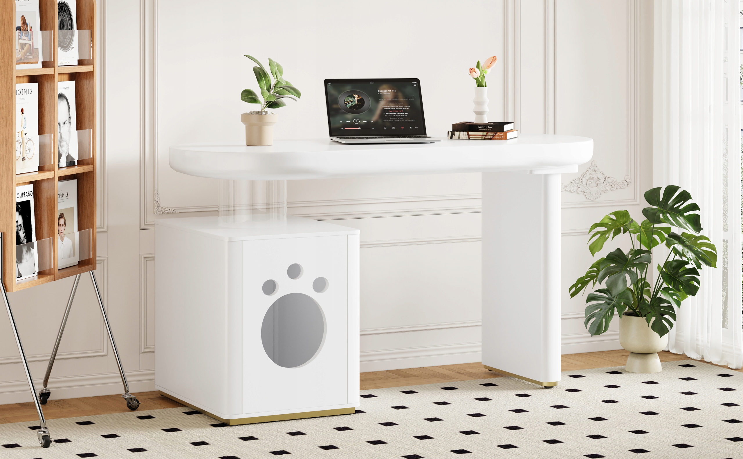 Сучасний письмовий стіл із вбудованим відсіком для домашніх тварин (для кішок M-XL або маленьких собак), що поєднує функціональність робочої станції з комфортом для вашого вихованця.