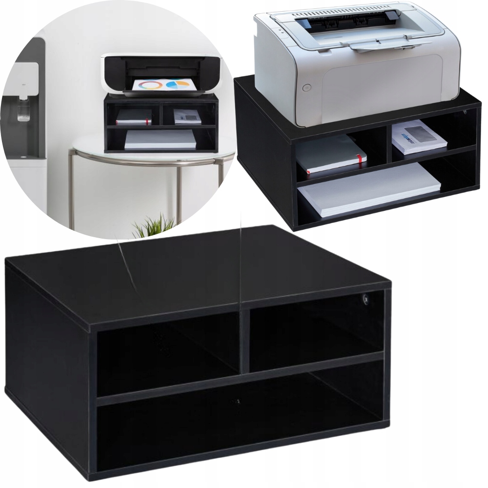 Принтер часто займає багато місця на столі, що може швидко призвести до проблеми з місцем, особливо на менших столах. Завдяки цій практичній шафі для принтера ви зможете ефективно використовувати простір під принтером для зберігання паперу для принтера, картриджів та іншого офісного приладдя. Для цього є два малих і одне велике відділення. Завдяки простому дизайну шафа для принтера добре впишеться в будь-який інтер’єр.