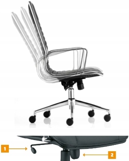 - за допомогою гвинта (2): регулювання сили опору спинки.