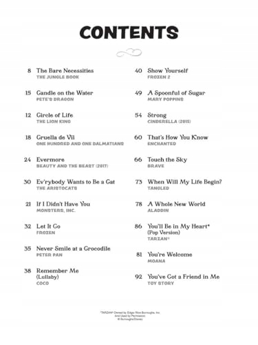 (легка пісенна книга фортепіано) Діти, які навчаються грати на фортепіано, буде грати 20 хітів Діснея в цій колекції Helpphul практика для вивчення кожної пісні. Включає: голі нісситності (з книги джунглів) * коло життя (з короля лева) * колись (від краси і звіра) * відпустіть його (з заморожених) * Пам'ятайте мене (з Коко) * торкайтеся неба (від сміливого) * Коли почнеться моє життя? (від заплутаних) * цілий новий світ (від Аладдіна) * ти welce (від moana) * у мене є друг (від історії іграшок) * та багато іншого.