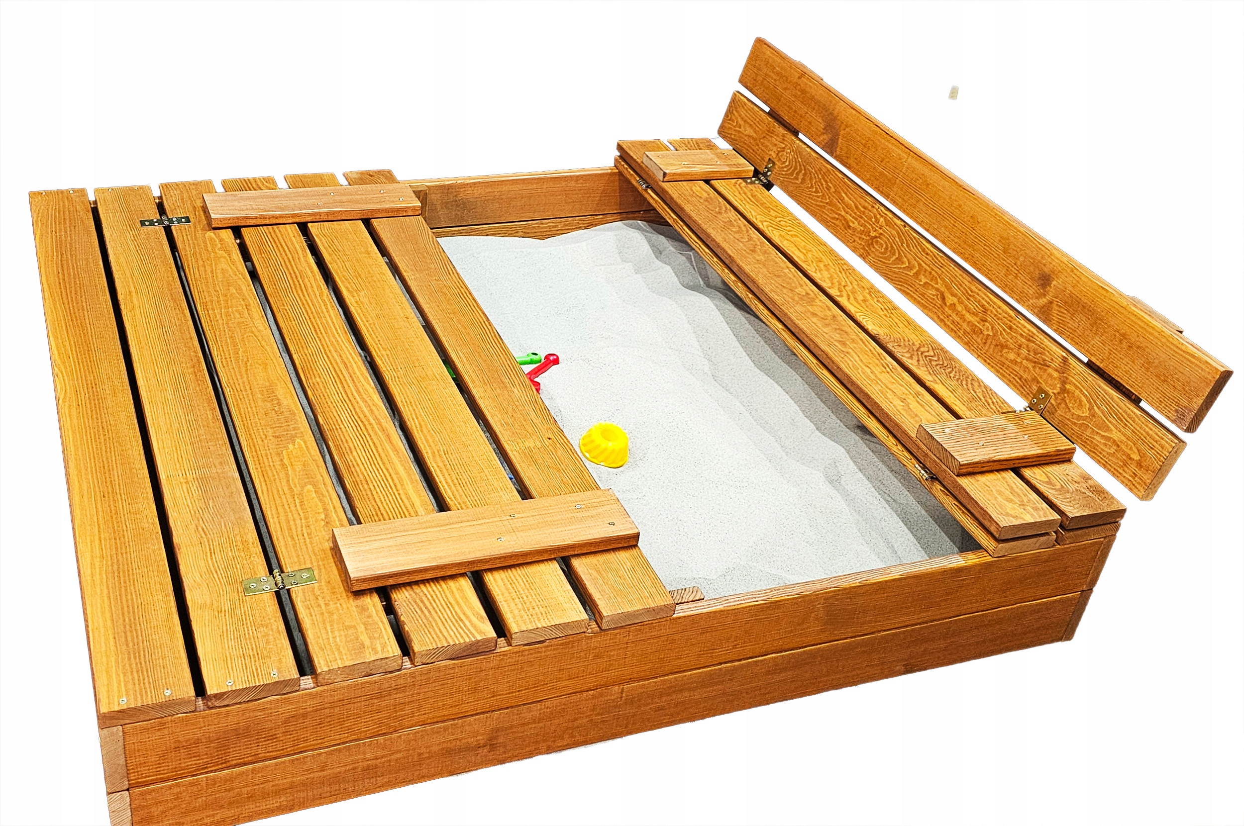 ПІСОЧНИЦЯ 120X120 ДЕРЕВ'ЯНА, ЗАКРИТА + 2X ПРОСОЧЕНІ ЛАВКИ ВИРОБНИК