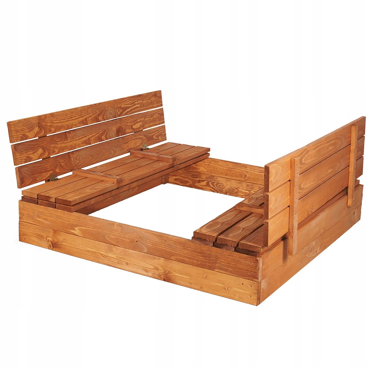 Пісочницябула вироблена в Польщі з увагою до кожної деталі та з думкою про комфорт і безпеку дітей b>. Деревина полірована, а краї закруглені, щоб забезпечити максимальне задоволення під час літніх ігор, без ризику неприємних сюрпризів.
