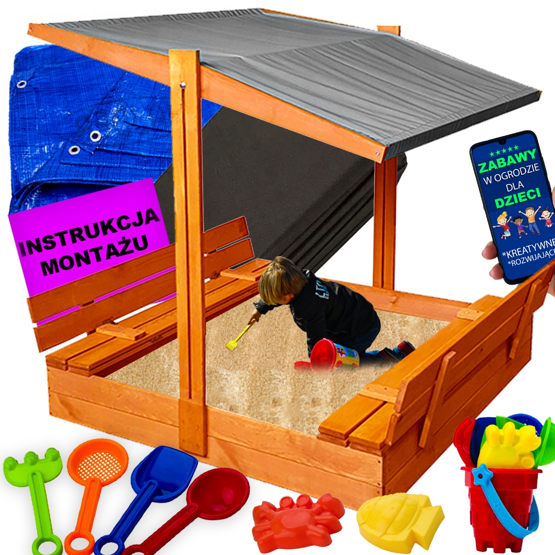 Наша пісочниця з 2 лавками та дахом є польською та повною Товар ПРЕМІУМ класу b>. Продумана в кожній деталі, так що гра в ній БЕЗПЕЧНА і стає справжнім ЗАДОВОЛЕННЯМ. Пісочниця постачається з аксесуарами та безкоштовними приналежностями.