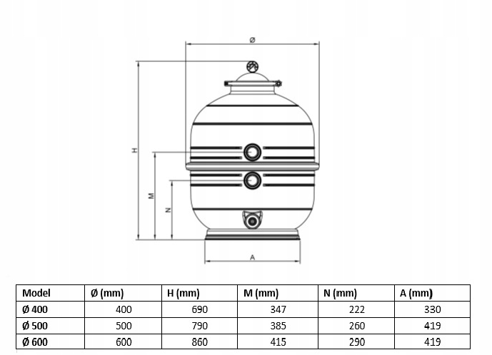 фільтр піску MIDI 400 з бічним клапаном