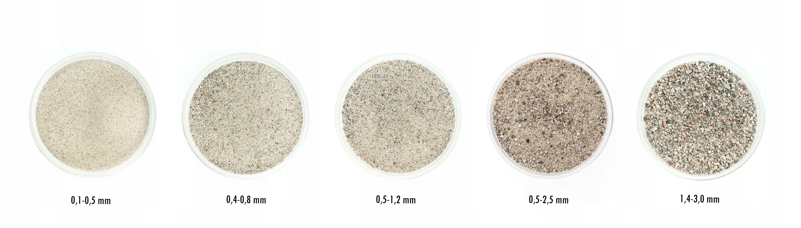 Увесь фільтрувальний гравій виробляється відповідно до стандарту PN-91/B-06716. Вони мають відповідний вміст кварцу, а також завищений і занижений розмір вміст приблизно 15 %. Заповнювачі систематично перевіряються в лабораторії підприємства, де, серед іншого, перевіряються на: такі параметри, як: вміст пилу, крива розміру зерна, потік води.
