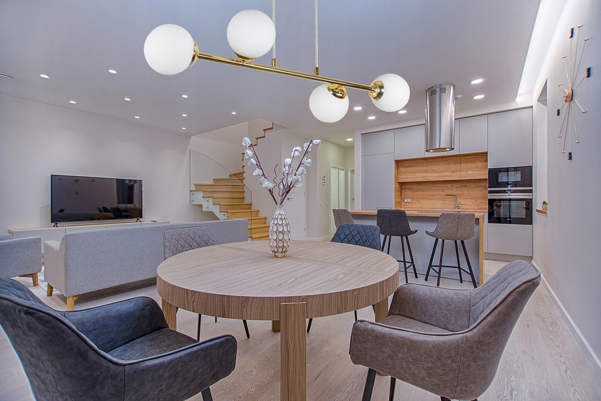 Сучасний стельовий світильник - золота люстра з білими плафонами. Дизайнерський стиль, який ідеально впишеться у ваш інтер'єр.