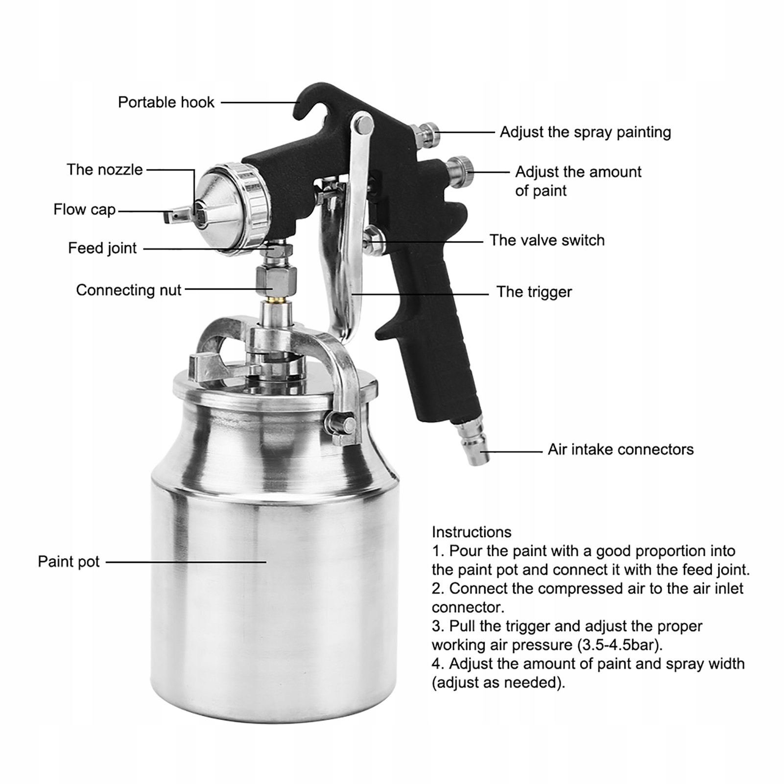 1. Після кожного розпилення вчасно очистіть зайву фарбу в горщику, потім промийте внутрішню частину і зовнішню частину горщика тонше і очистіть зовнішню частину всмоктувальної труби (лише нижній горщик).