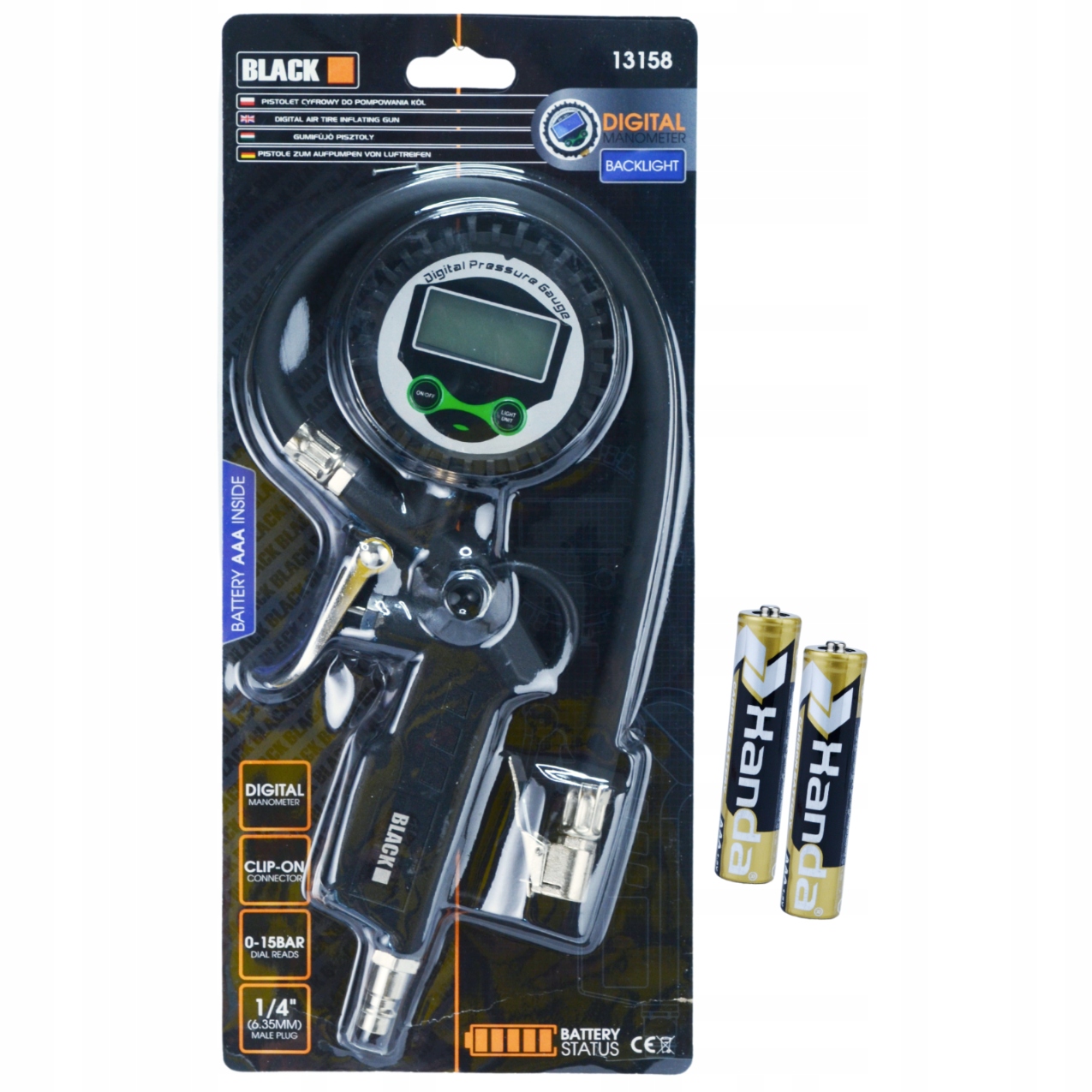 PISTOLET CYFROWY DO POMPOWANIA KÓŁ 1/4" 0-15 BAR WĄŻ 45 CM BLACK