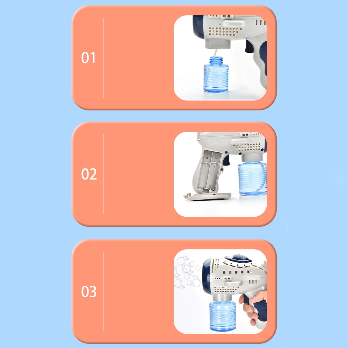 ✅ Наш банківський пістолет має автоматичний механізм, завдяки якому вам потрібно просто закрутити пляшку з рідиною а потім обережно натисніть на спусковий гачок, щоб утворилися мильні бульбашки.