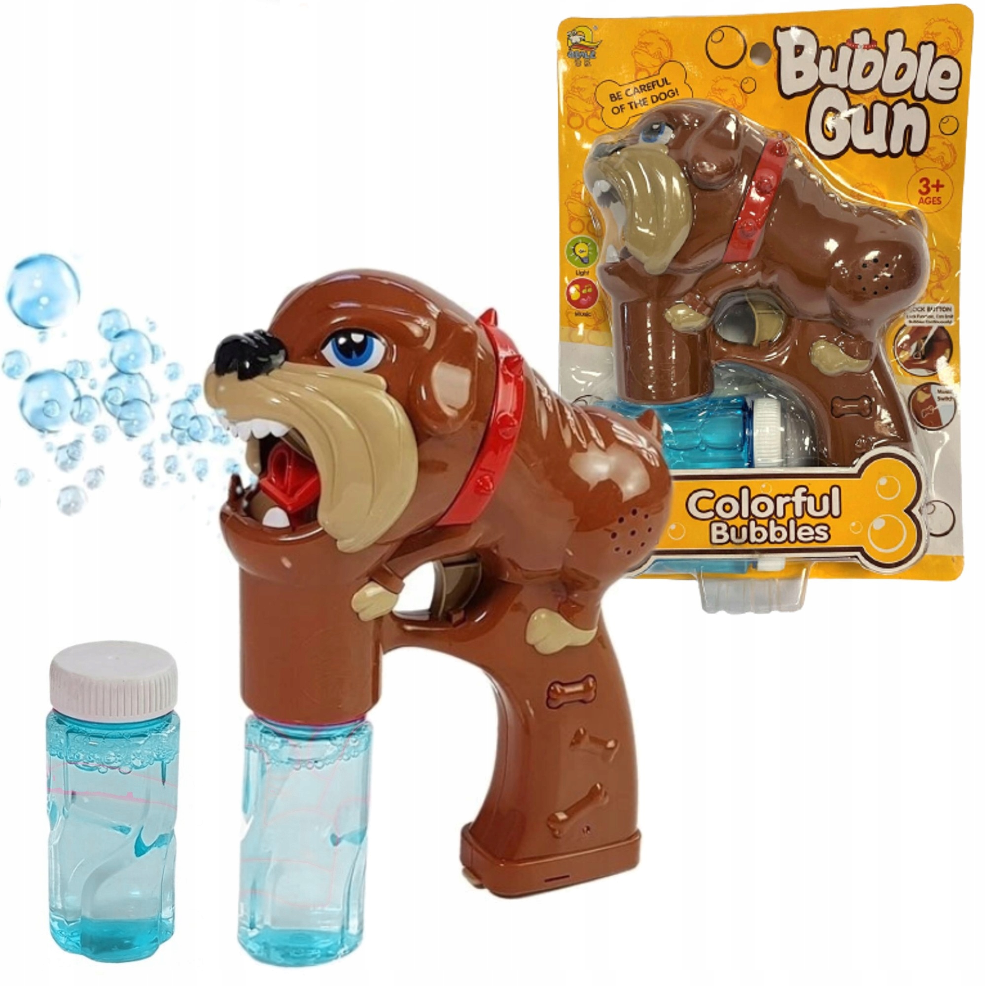 Форма іграшки нагадує небезпечну собакуз коричневою шерстю. Вона виготовлена з пластику. Під стовбуром встановлена пляшка з розчином для створення бульбашок, і пістолет випускає бульбашки.