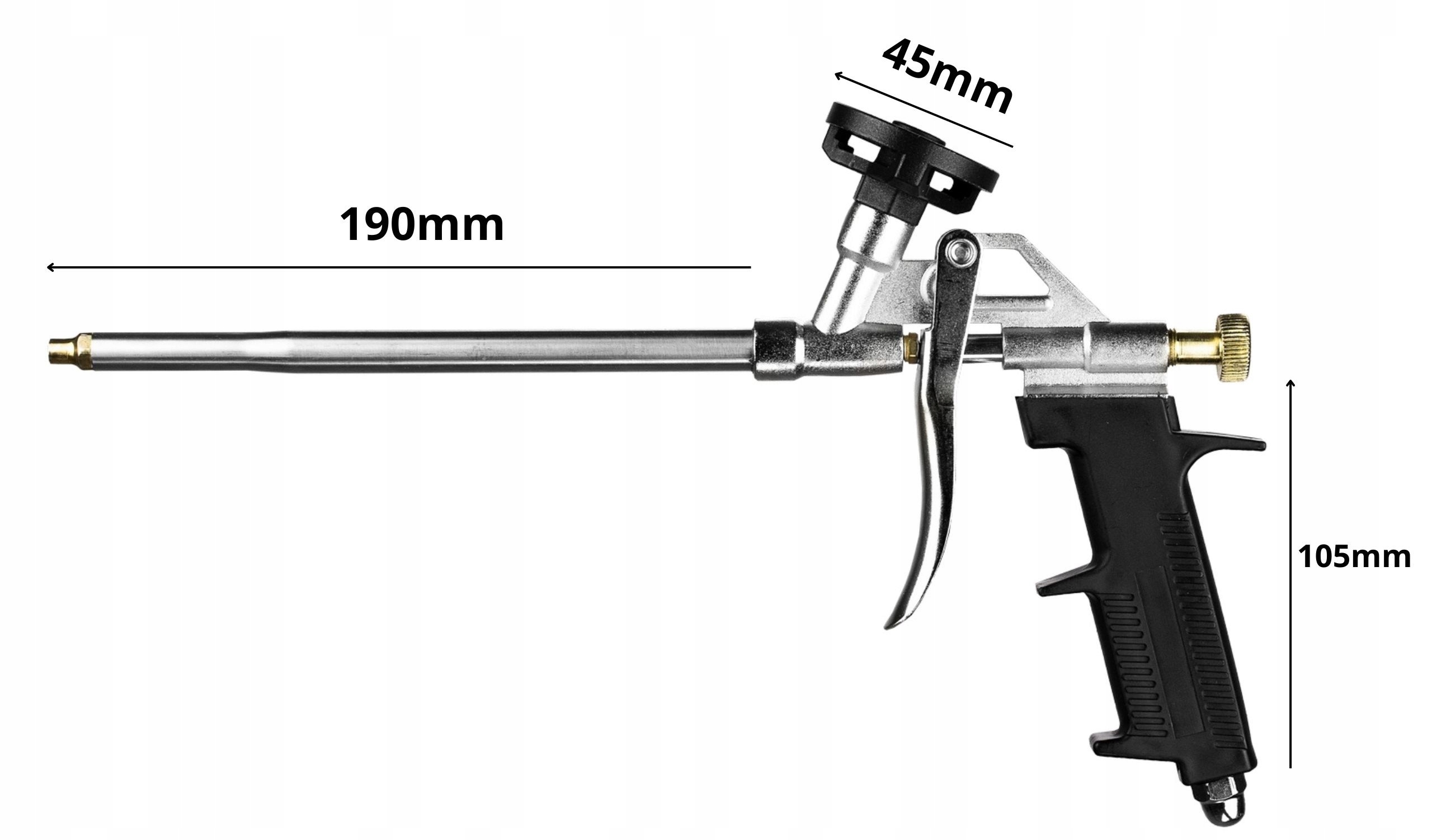 ✅ Пістолет необхідний для будівельних робіт з використанням пінопласту. Його можна використовувати для нанесення піни при установці вікон, дверей або заповненні порожніх просторів.