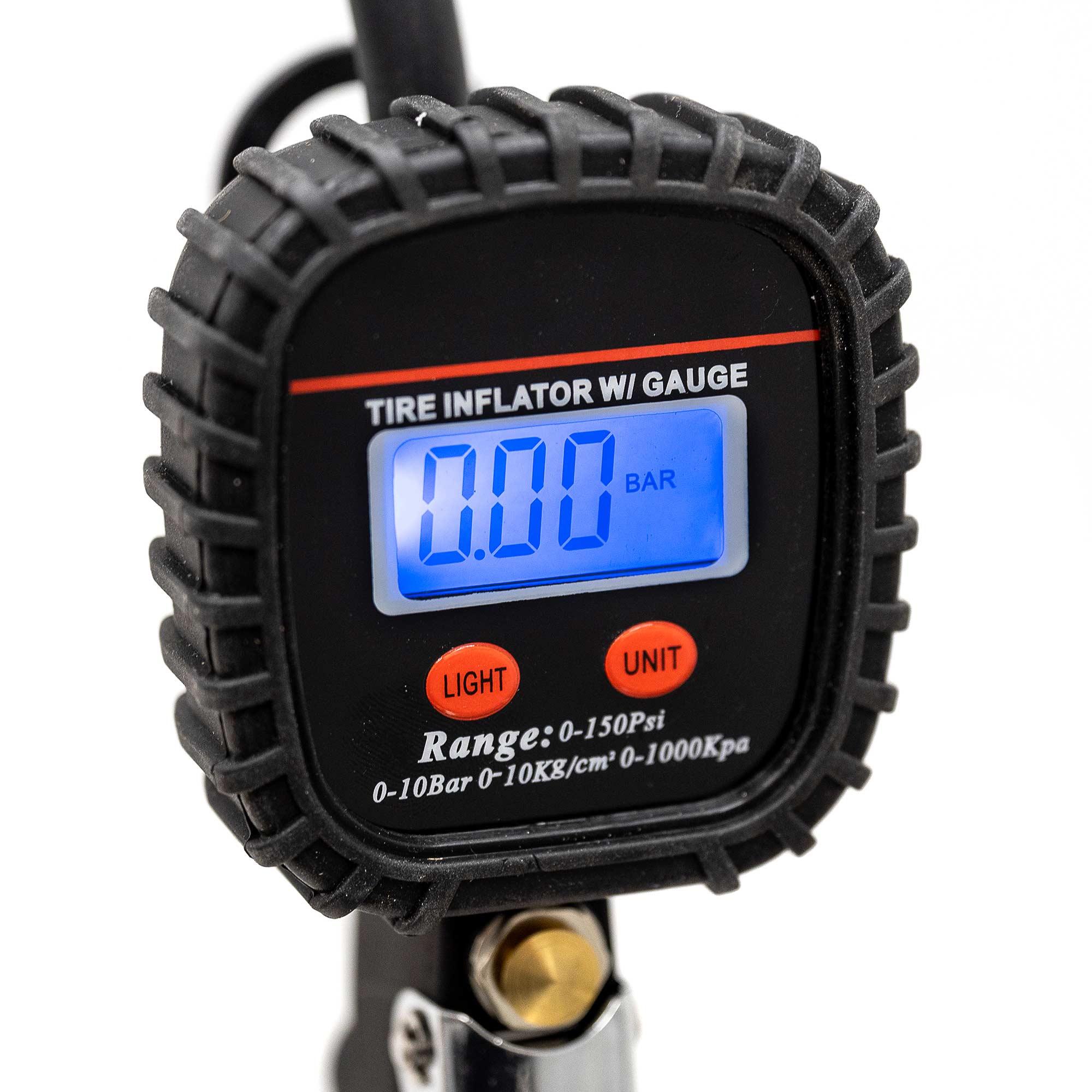 Пістолет для накачування шин, оснащений чітким цифровим дисплеєм. Цифровий манометр забезпечує більшу довговічність і зручність, ніж аналогова версія.