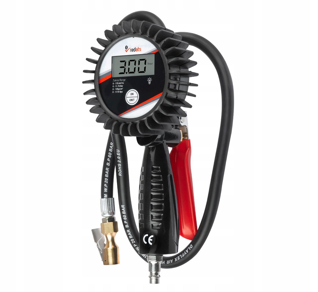 Манометр знаходиться в прогумованому корпусі - немає ризику його пошкодження, навіть якщо він впаде на землю.