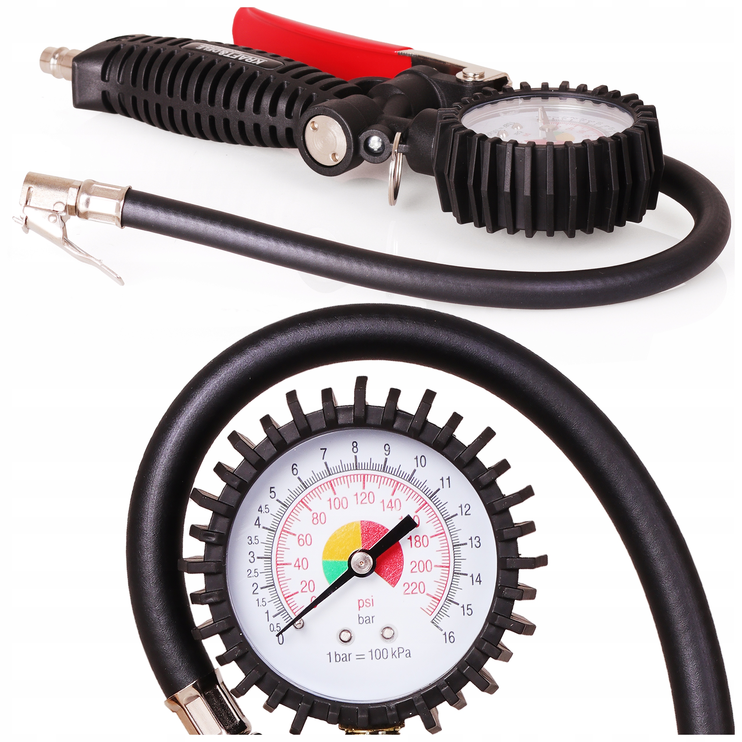 Пістолет для накачування коліс з шинами точність манометра 0-16 бар