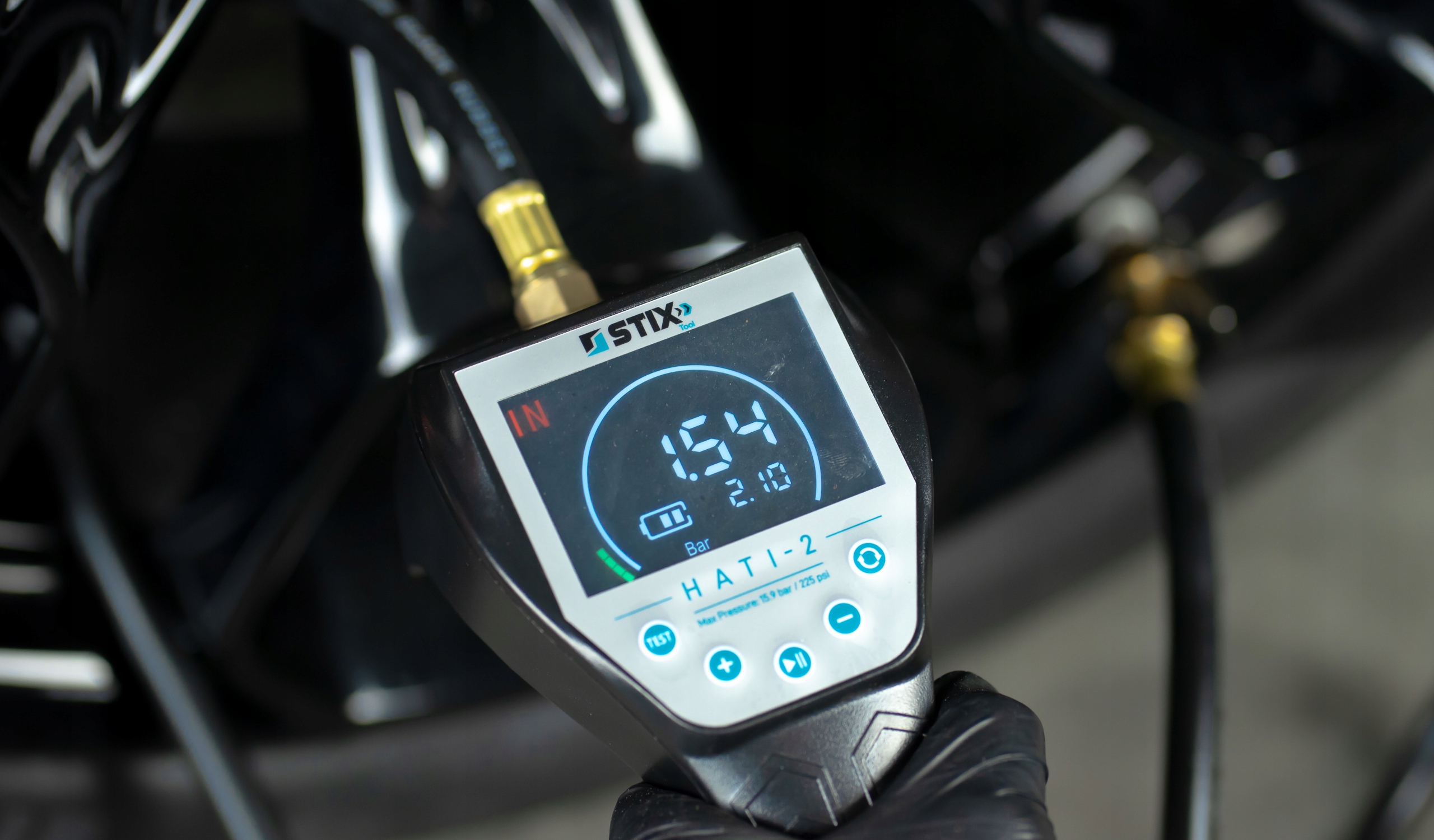 Пістолет HATI-2 від Stix - це інноваційний інструмент для автоматичного накачування шин, який гарантує повний контроль над процесом. Після установки потрібного тиску пістолет автоматично запускає і припиняє подачу, що забезпечує зручність і економію часу. При необхідності також доступний ручний режим, що дозволяє коригувати тиск за допомогою кнопок +/-.