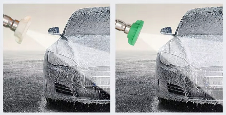 пістолет високого тиску з 1/4 "швидким роз'ємом з форсунками 0 градусів (червоний), 15 градусів (жовтий), 25 градусів (зелений), 40 градусів (білого) та мила (чорний) для задоволення різних вимог до очищення.