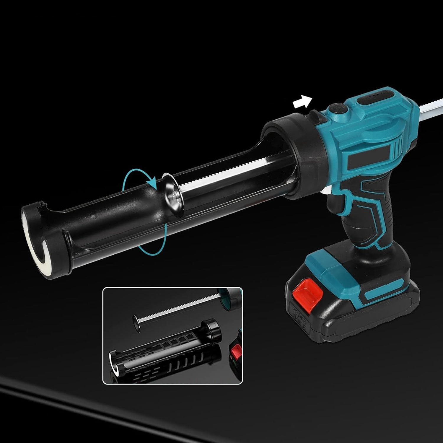 Цей акумуляторний бездротовий пістолет для герметизації ідеально підходить для всіх стандартних картриджів для герметизації та 300 мл (10 унцій) клею. Широко використовується для гідроізоляції та латання кухонних плит, встановлення душових кабін, ремонту плитки та закладення швів. Використовується для зручного заповнення щілин між плитками герметиком, мастикою або скломатеріалом.