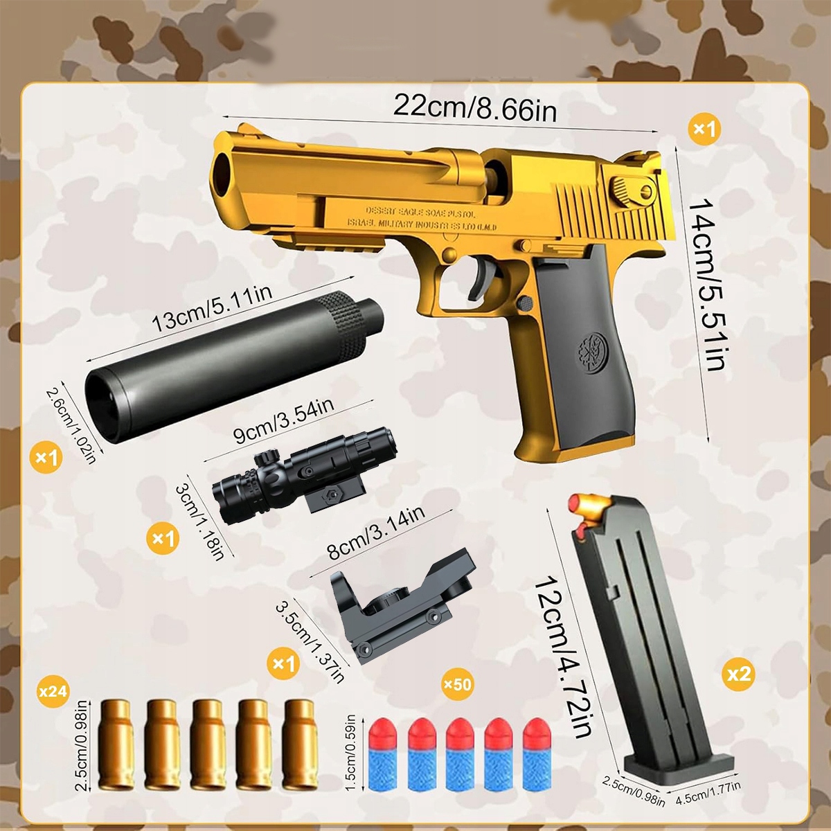 Пістолет Gold Desert Eagle з використанням губчастих патронів Дальність викиду снаряда 10 метрів