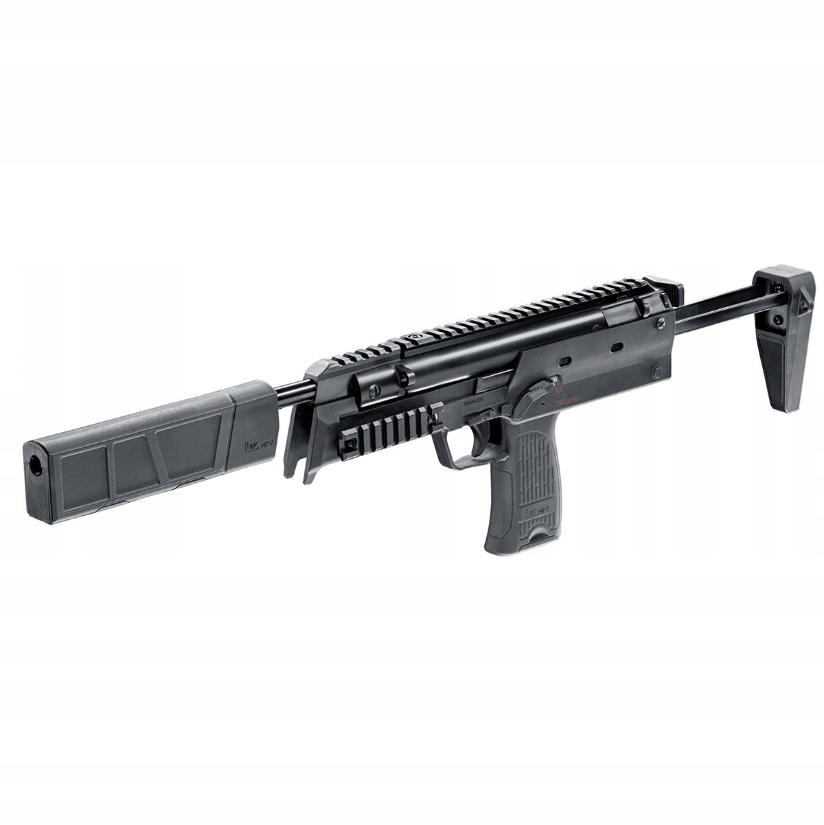 Пневматична гвинтівка виготовлена з міцної комбінації металевих елементів і пластику. Ліцензоване маркування H&K нанесено на корпус і глушник. Пістолетна рукоятка має нековзку структуру, що забезпечує надійне захоплення. Підвищити стабілізацію під час прицілювання допомагає висувний приклад, який можна встановити в одне з трьох положень. У зручній перезарядці пневматичної зброї допомагає фіктивний глушник, який забезпечує міцне захоплення ствола під час заряджання. Пневматична зброя оснащена 22-мм верхньою RIS-рейкою і двома короткими бічними, що дозволяє встановити будь-які приціли. Розсувний запобіжник, розташований перед селектором вогню, захищає від можливості неконтрольованого пострілу. На корпусі пневматичної зброї є проушини для кріплення, які дозволяють використовувати ремінь для перенесення.