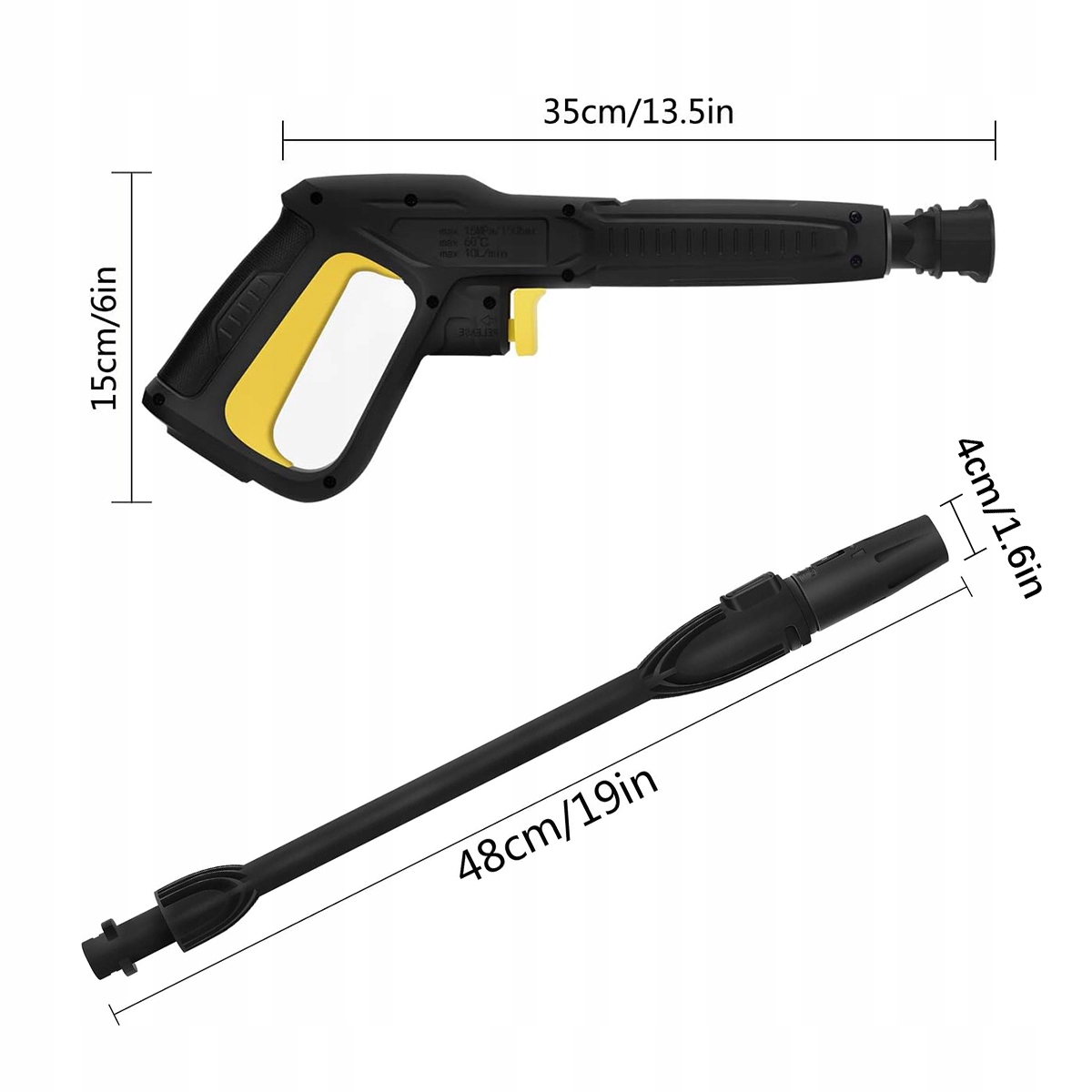 Розпилювальна трубка з регульованим соплом: сопло можна обертати, щоб регулювати режим розпилення. Форсунка на розпилювальній трубці очищається швидше, ніж стандартні форсунки. Сильний напір води ідеально підходить для очищення важкодоступних місць зі стійким брудом. Ідеально підходить для чищення, миття автомобілів, чищення стін тощо.