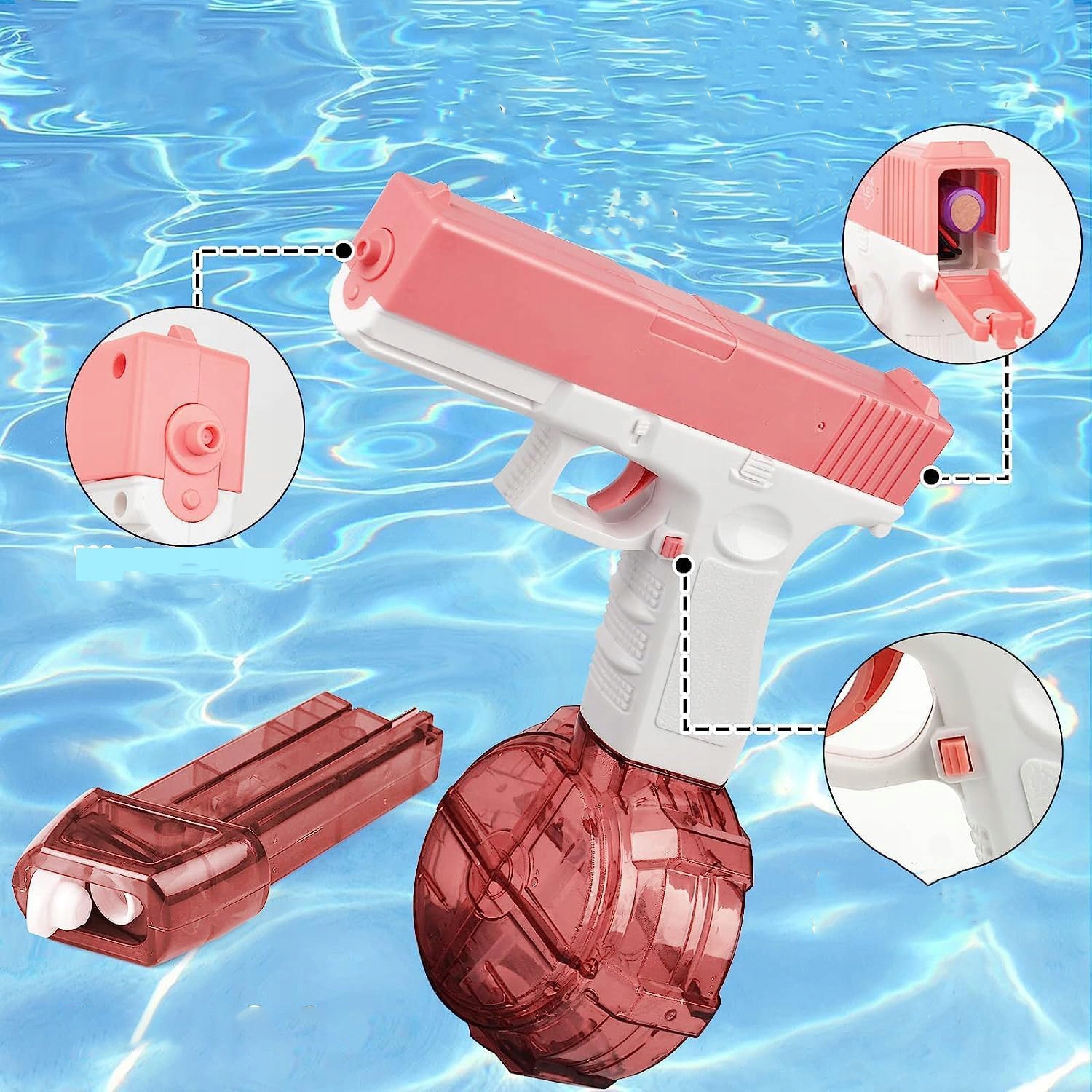 Наш електричний водяний пістолет — це повністю автоматичний водяний пістолет для дорослих і дітей, який працює однією кнопкою, простий у використанні дітьми. Поки спусковий гачок натиснутий, струмінь води буде безперервно скидатися з високою швидкістю.