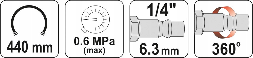 - з'єднання 1/4" встановлено на корпусі, що обертається - це запобігає заплутуванню пневматичних шлангів.