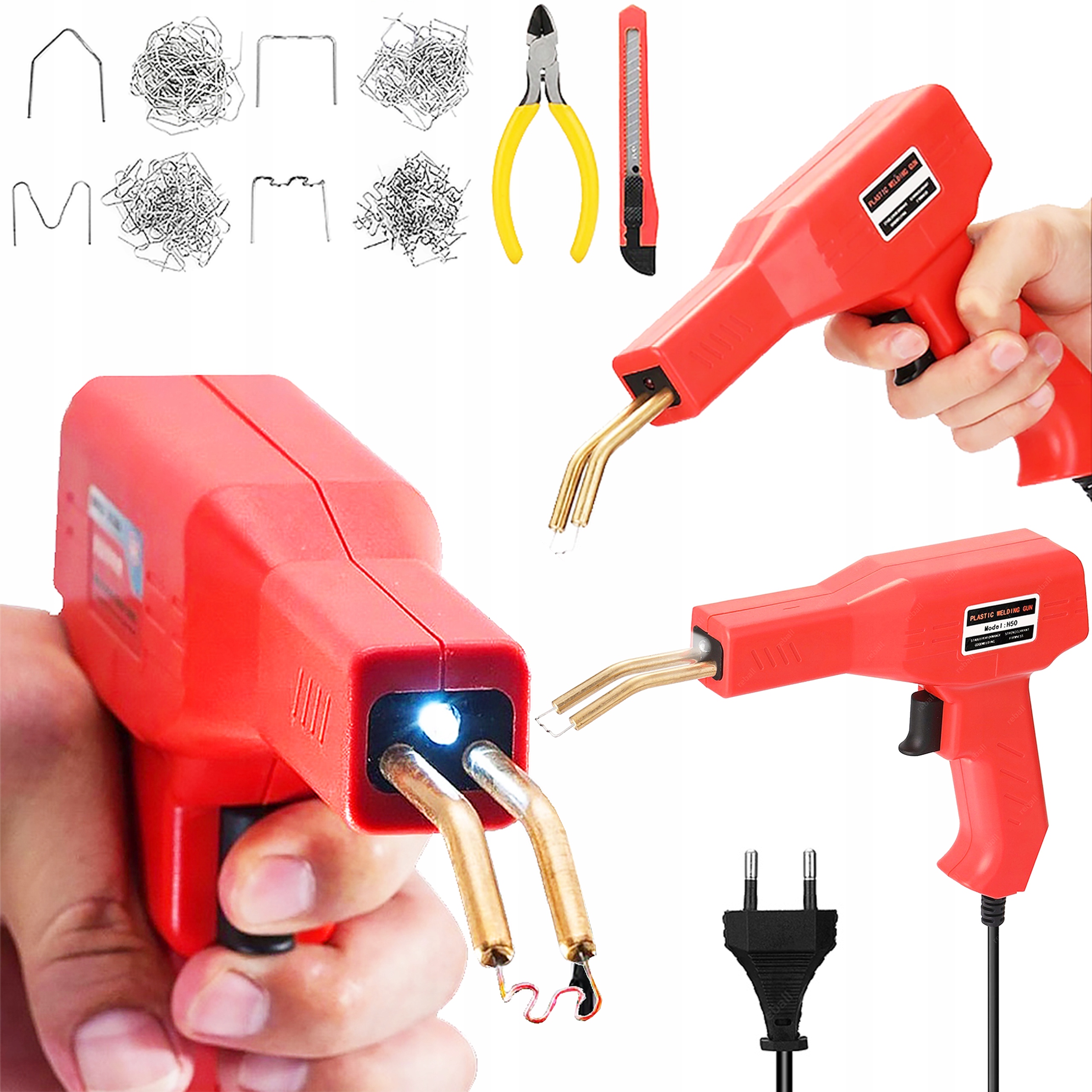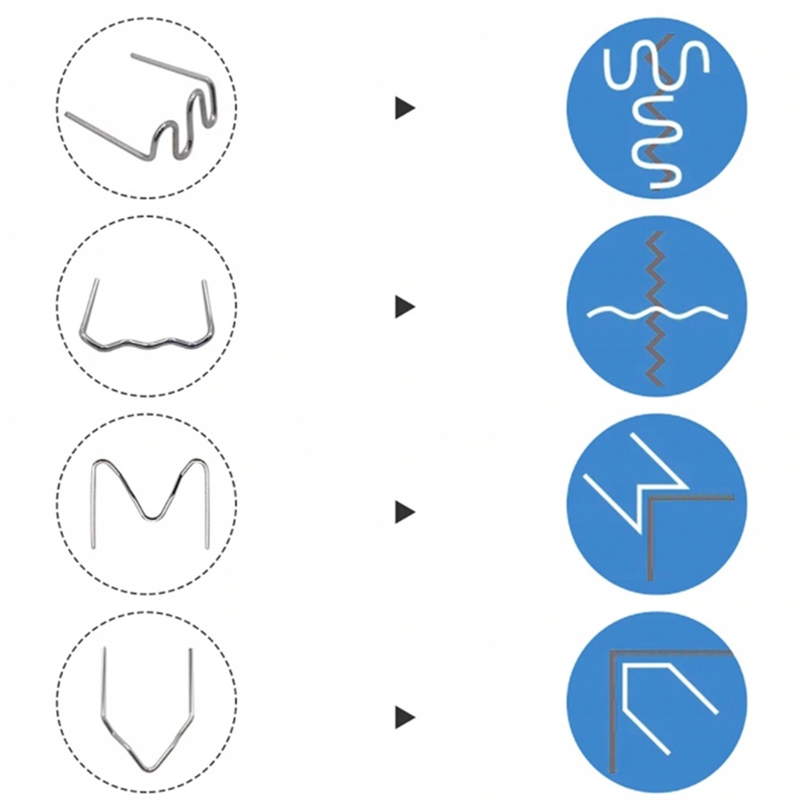 У набір входить 200 скоб (по 50 кожного типу) за допомогою яких пристрій назавжди з'єднає тріснуті пластикові елементи, а місце з'єднання буде стійким до ударів і скручування.