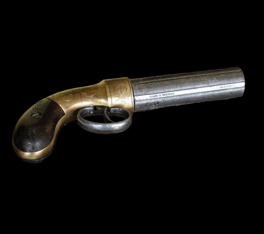 PISTOLET PIEPRZNICZKA SYGNOWANY ALLEN & THURBER 1837r. złoty (K8652-L)